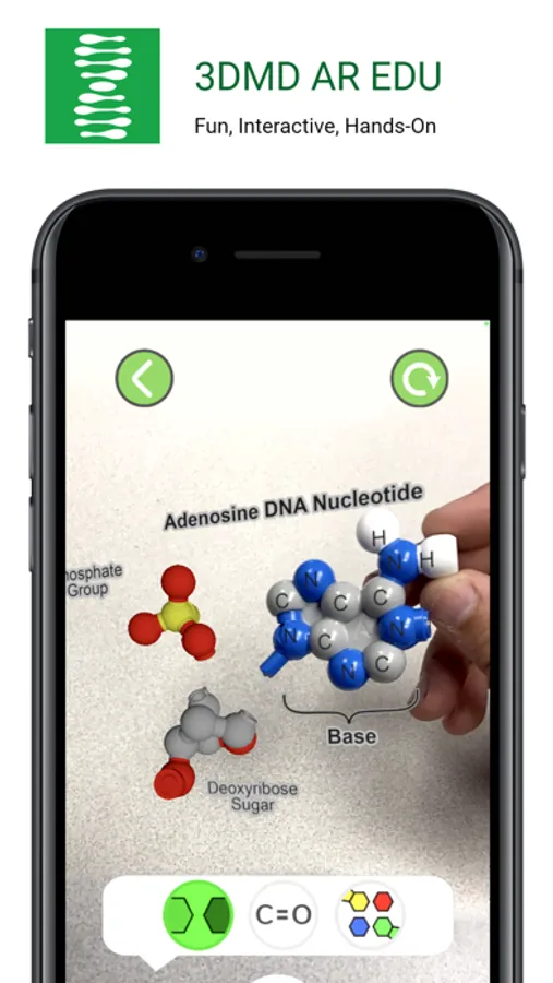 3DMD AR EDU allows to further explore 3D Molecular Designs’ kits and models through augmented reality-based activities. 3DMD AR EDU uses physical models as AR targets and leads students through digital learning activities. As students progress through AR activities, they will continue to manipulate physical models, actively engaging in making sense of molecular processes through collaboration with classmates.