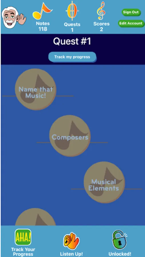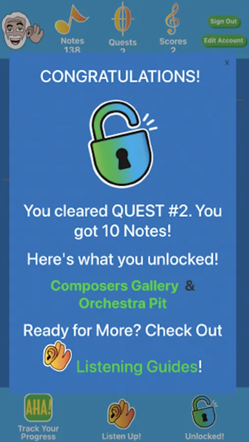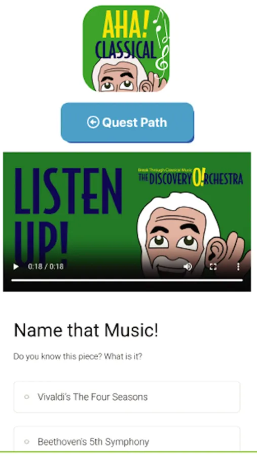 Brought to you by The Discovery Orchestra and Social Impact Studios, AHA! Classical is a new gaming experience that allows you to interact with, learn about, and practice listening skills using classical music. Join Maestro Maull as he takes you on music listening “Quests” that are accessible and engaging for all ages and skill levels. As you successfully complete Quests, you will be rewarded with Notes (individual points) and Scores (maps for guided listening), as well as unlock new content. You can follow the Quest pathways of learning provided, or explore individual topics based on personal interest. New Quests will be released periodically, providing more opportunities to develop your listening skills.