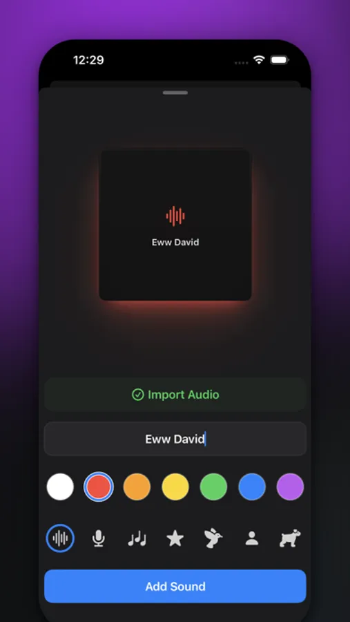 You can import any audio file, and customize it's look by picking a color, icon, and name.
