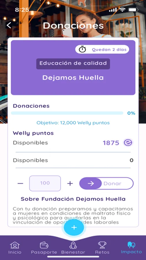 - Te damos Welly puntos a cambio de tu bienestar, que te permiten apoyar causas sociales.