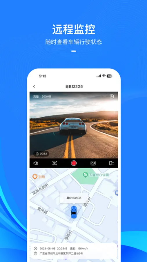 这是一款支持4G联网记录仪远程连接使用的应用程序,APP主要有以下功能: