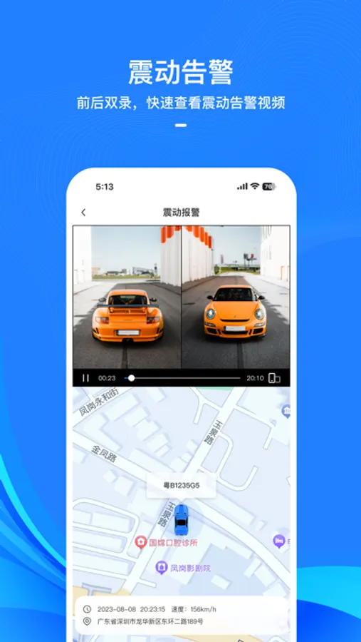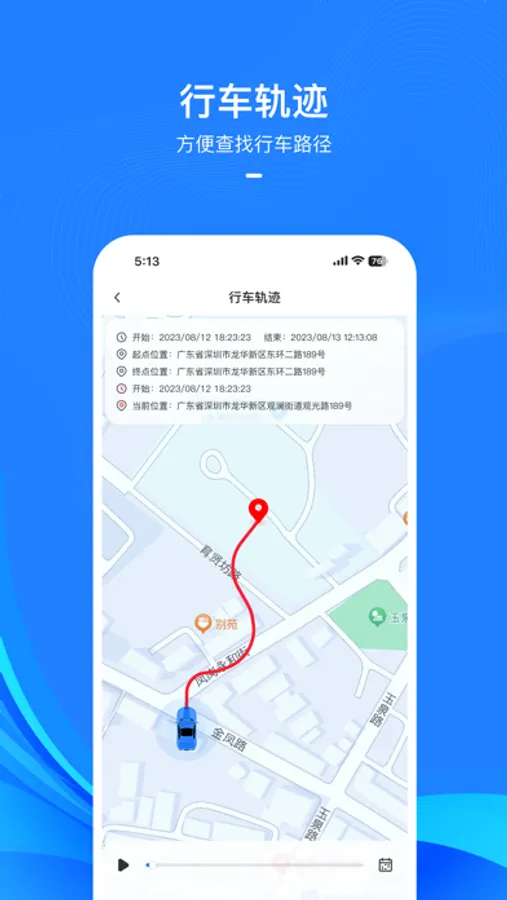 3. 支持历史行车轨迹查看、抓拍记录查看、车辆震动告警消息推送与查看;