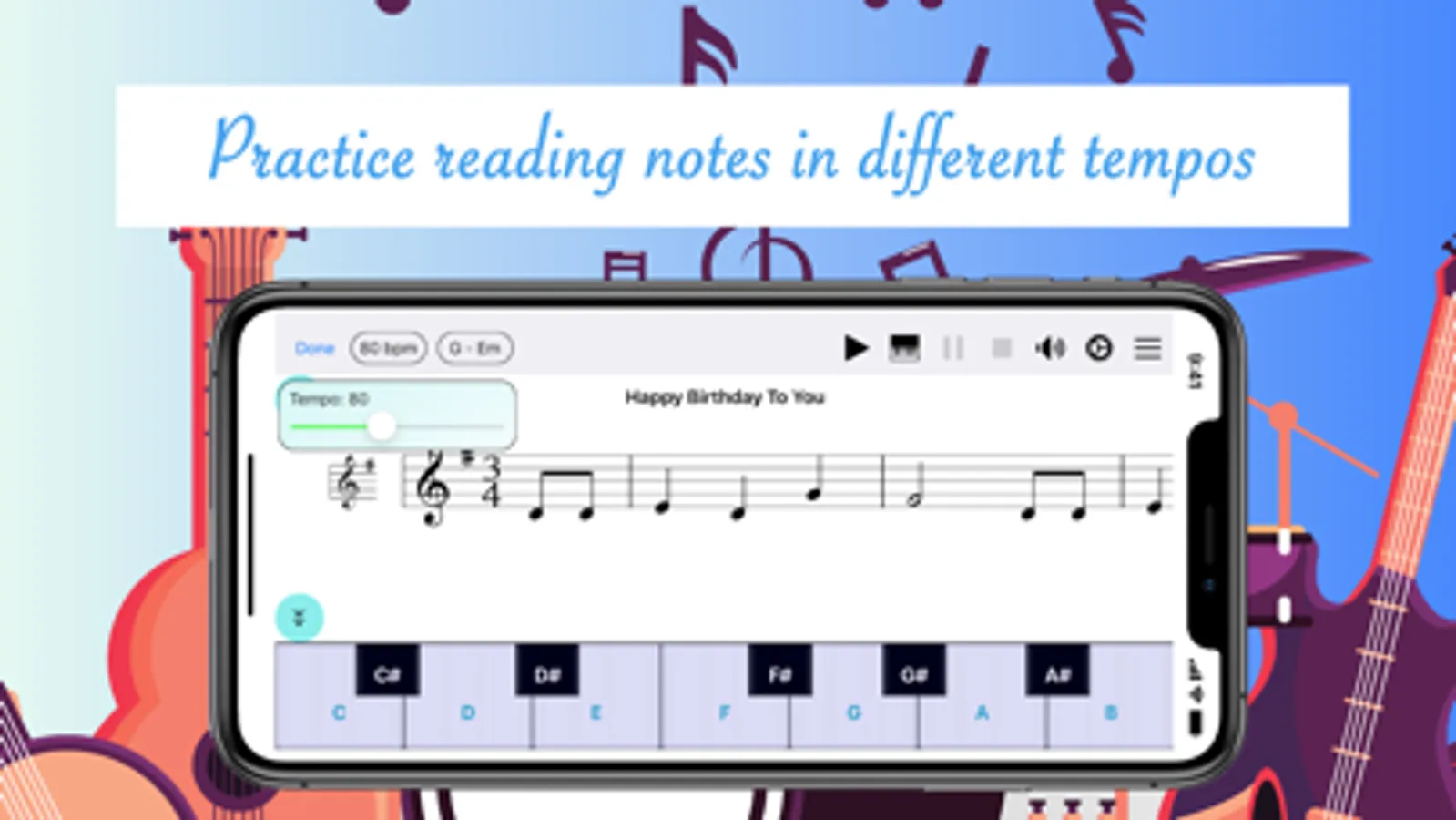 Easy Note is an app that helps you practice reading music notes. You can practice with the on-screen keyboard or with your own instrument (the app listens to you while you're playing and checks if you play the correct notes).