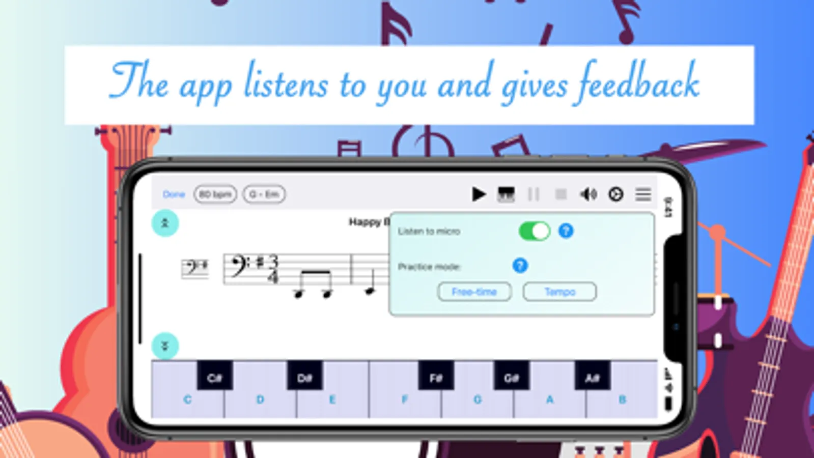 - Note recognition by micro. You play the notes with your instrument then the app checks if you play correctly or not.