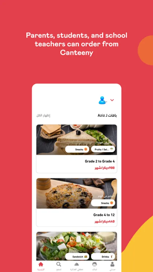 كانتيني يساعد أولياء الأمور، والطلاب، وحتى المدرسين إنهم يحجزون وجبات صحية، توصلهم لي عند مدرستهم، كل يوم!