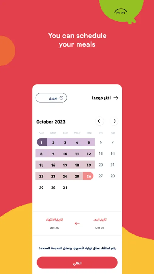 تحدد الأيام اللي تبي توصلك فيها الوجبات، يعني حتى لو كنت تداوم يوم وترك، لا تحاتي!