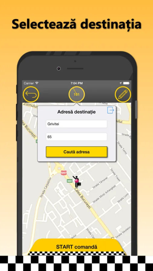 - The location of the terminal is automatic, for adjustment move the map so that the location for TAXI arrival is the desired place.