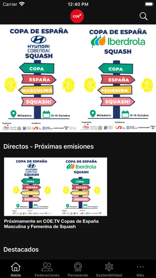Bienvenidos a la app oficial del COE, el lugar donde podrás seguir todo el contenido interactivo sobre las novedades más destacadas de nuestros deportistas, y de sus respectivas competiciones.