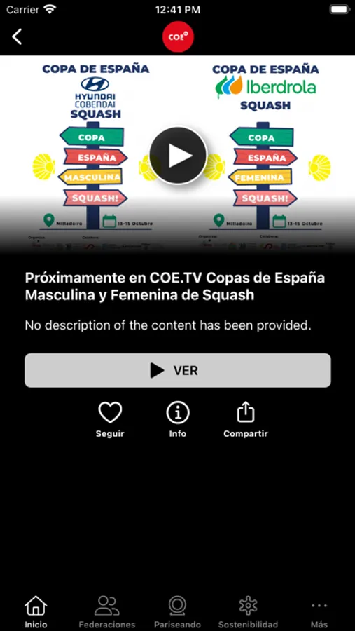 Accede al mejor contenido para ver todo lo que acontecen al Comité Olímpico Español. Podrás ver competiciones completas, entrevistas, resúmenes, escuelas y mucho más. Con la app del COE, no te perderás nada sobre tus deportistas favoritos.