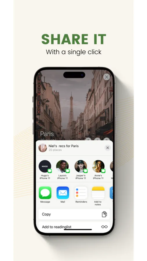 Share them in 1 click. We generate a sharable webpage so your friend you’re sharing it with does not even need to have the app!