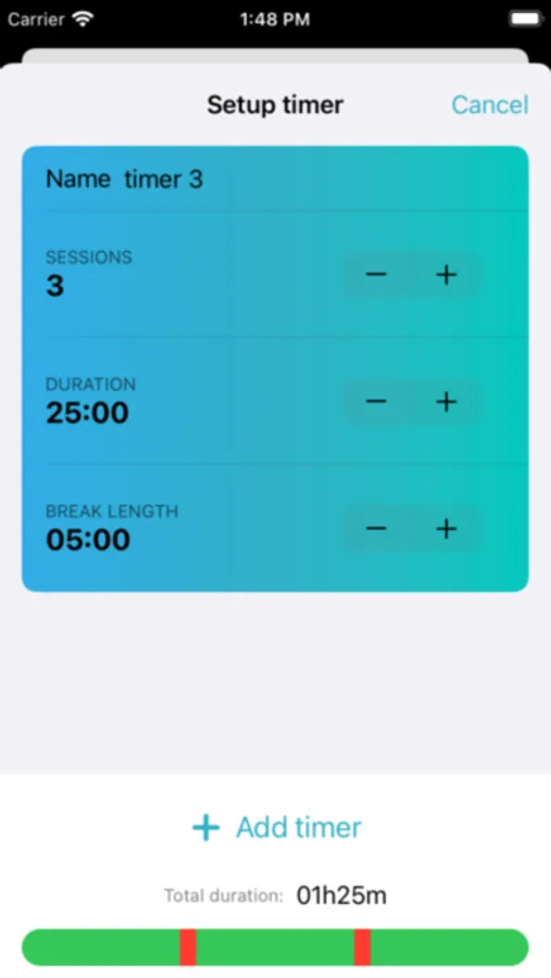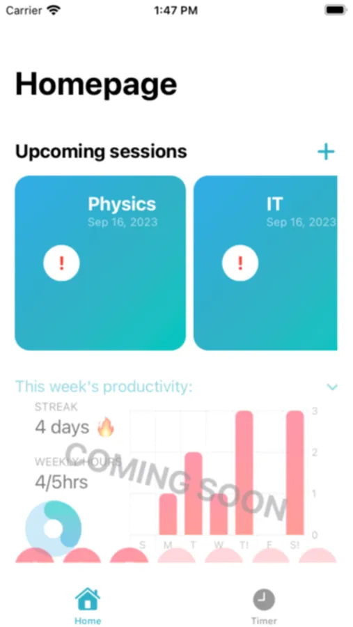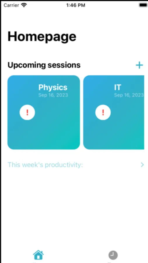 An app that allows the user to create study sessions which include timers to break up these sessions into parts to accomplish multiple tasks and maximising productivity.