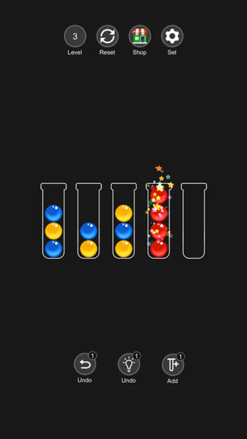 3. If you're stuck, you can use power-ups! There are three types: Undo, Hint, and Add Tube. Each game allows you to use these power-ups once, so make the most of them!