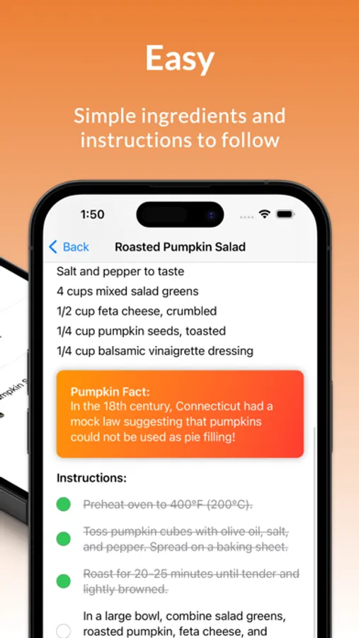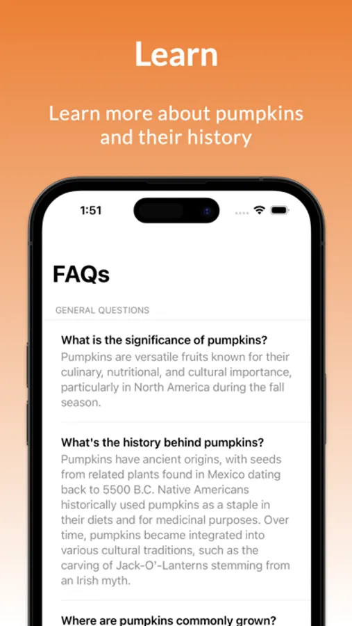 Dive Deep with FAQs: Beyond just recipes, our app equips you with a knowledge base. Learn more about pumpkins, their nutritional benefits, history, and more.