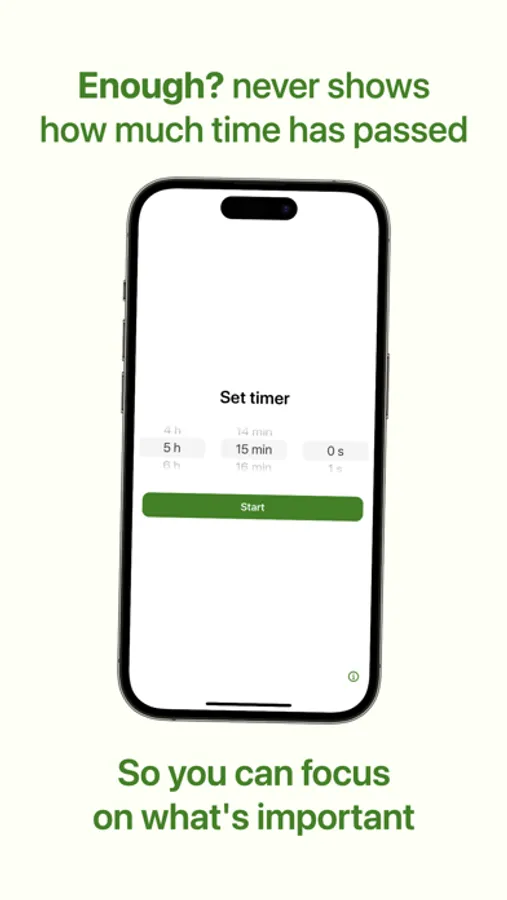 Have I done enough yoga? Have I spent enough time reading this book? Enough is a timer app that doesn't show how much time has passed, but only whether your preset time goal has been met or not. This way, you won't be tempted to constantly check the clock and can focus on what matters most. Simply input the time through a simplified user interface and start your activity!