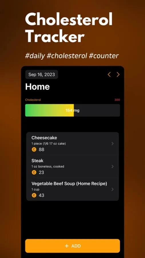 2. Effortless Cholesterol Tracking: Record your daily cholesterol intake with ease. Input the foods you've consumed, and Cholesterol Tracker will automatically calculate your cholesterol intake.