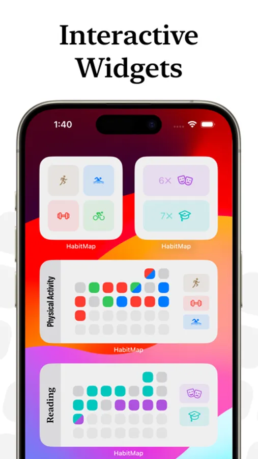 • Interactive Widgets: HabitMap features interactive widgets, so you can easily view and log your progress from the home screen.