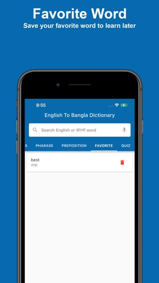 This English To Bangla Dictionary app is totally free and Works totally offline!
