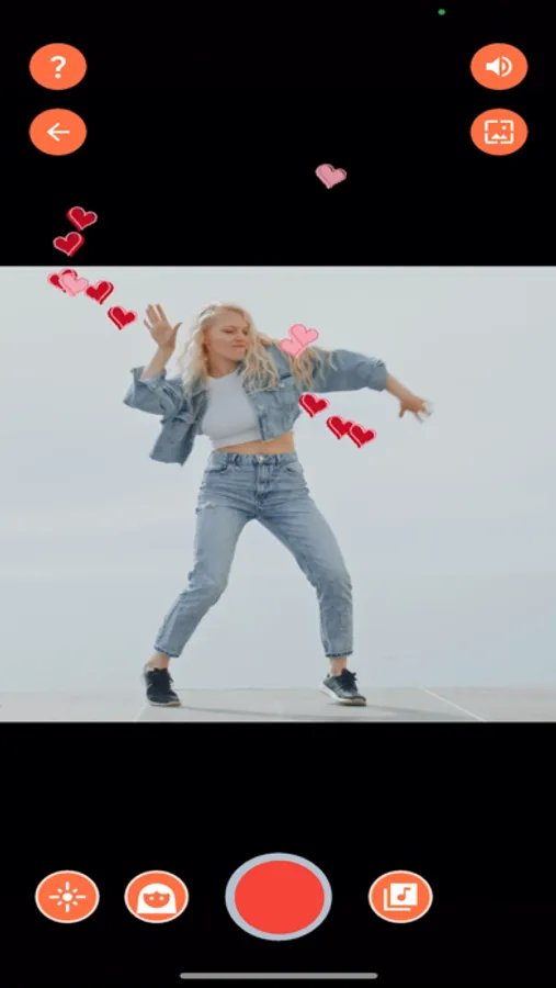 エフェクトを決めた後、動画録画することができます。録画した動画はカメラロールに保存したりSNSにシェアできます。