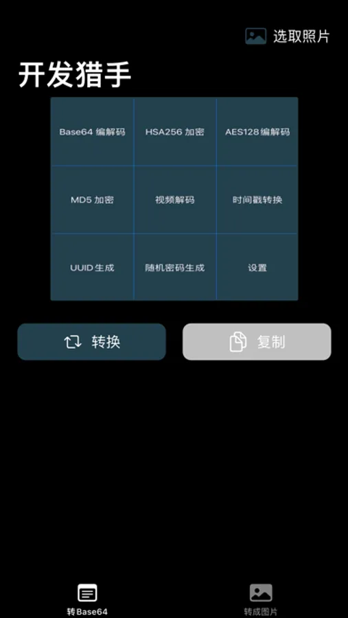 开发猎手是一款开发者日常工作中需要用到的小工具,在日常工作如果需要将图片转码Base64,或者将Base64转成图片,这款工具都能帮到你。