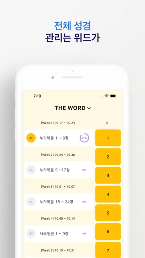 - 성경 읽기 표의 기록을 기반한 진행률을 보여줘요