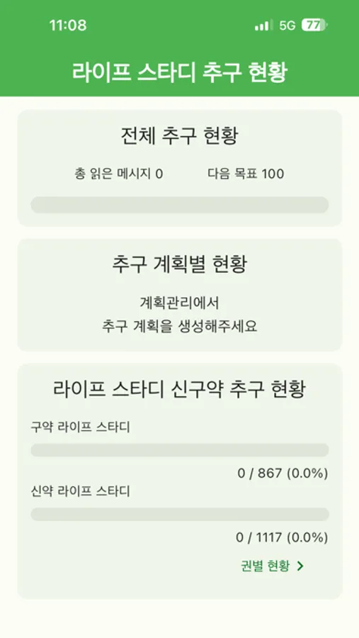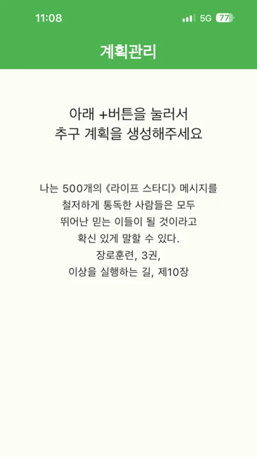 읽을 분량과 읽을 시간을 지정하여 하나 이상의 추구 일정을 생성할 수 있습니다.