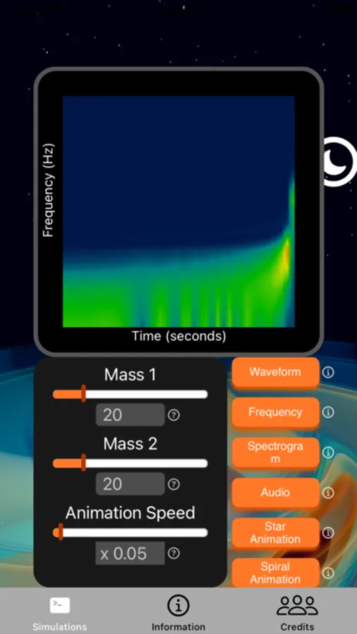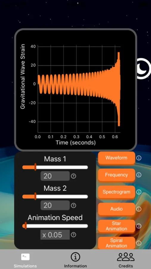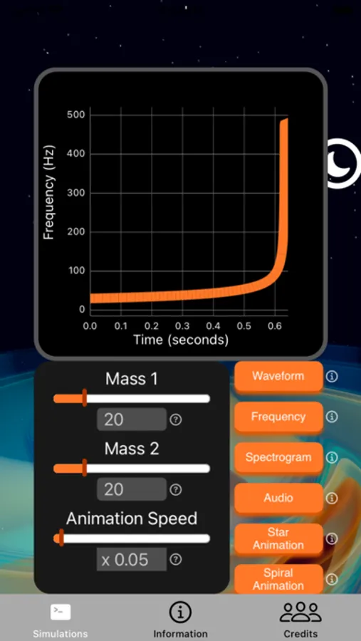 • Auditory Experience: Listen closely as you hear the evolution of gravitational waves, detecting the characteristic increase in time in strength and frequency. Try varying masses to see how pitch is affected.