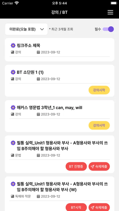 클라이 BT 앱은 문법, 말하기, 단어, 독해, 작문 등 영어의 모든 영역에서 그 설명하기가 가능하도록 치밀하게 설계된 학습 프로그램입니다.