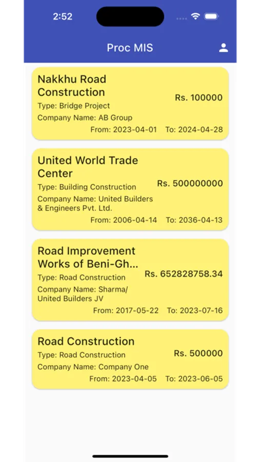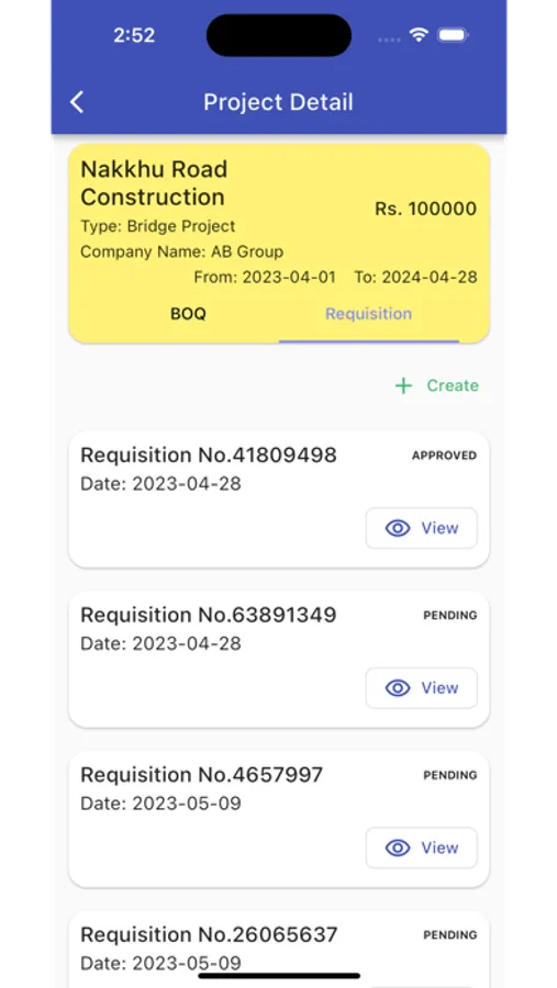 Application for construction companies. Proc MIS is a workflow process app built for construction companies. User can view projects assigned to them. User can also view BOQ(Book Of Quantity) of the assigned projects. This app allows requisition personnel to request materials from the site according to the clause and sub clause provided. From the application user can edit, delete and complete the requisition order.