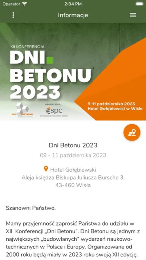 Dzięki tej aplikacji m.in. będziesz na bieżąco z agendą Dni Betonu, sprawdzisz wszystkie punkty programu, zapoznasz się z naszymi Partnerami i Sponsorami, ocenisz wystąpienia i zadasz pytania.