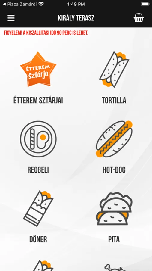 A Király Terasz Sajószentpéteren színesíti a gasztronómiai életet változatos ételeivel. Kínálatunkban szerepel tortilla, reggeli, hamburger, hot-dog, döner, pita, dürüm, box, leves, frissensült, köret, bőségtál, savanyúság, óriáspalacsinta és üdítő. Ha megéheztél, rendelj rajtunk keresztül és élvezd az online fizetés előnyeit!
