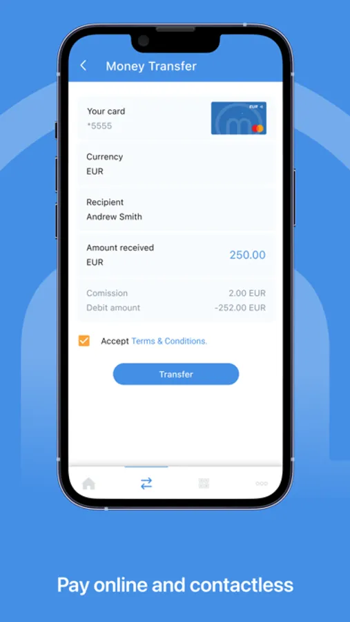 Accept transfers from card to card. The lack of a physical card or distance will no longer be a problem. All you need to do is have a family member or friend send you funds from their card and you can use them right away.