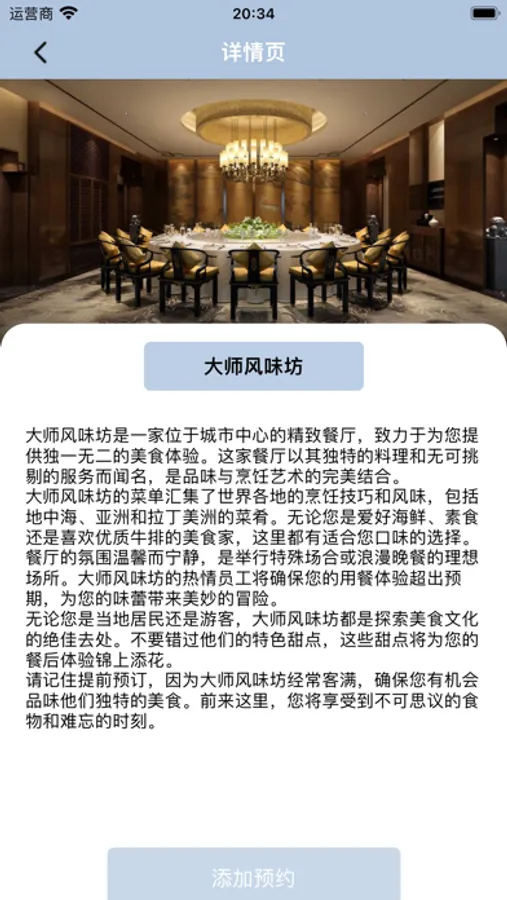 恰特-让恰饭更容易是一款为用户提供在线餐厅预约的app,用户可以选择心仪的餐厅,在线填写基本信息后进行预约。