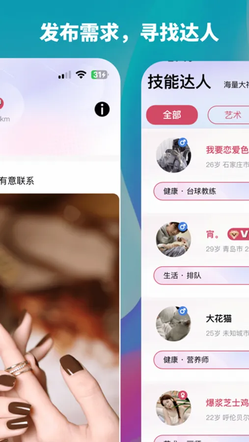 此款APP专门为生活技能需求和分享用户群体打造,可以在这里发布需求和发布自己的技能。