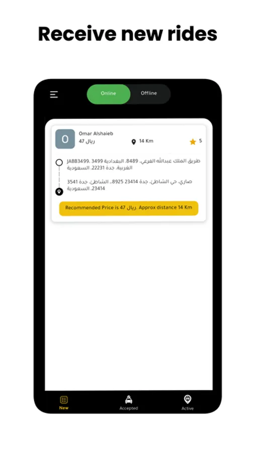 Track your ride requests history and income daily. Just by a click of a button you will be ready and all set for receiving ride request and making money.