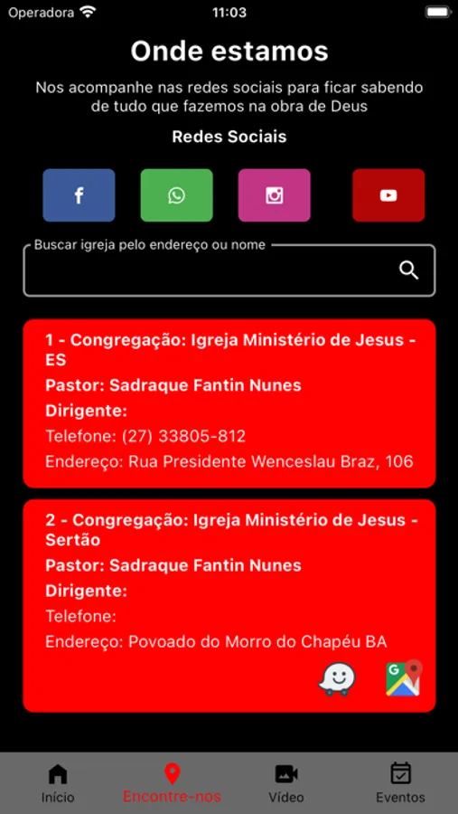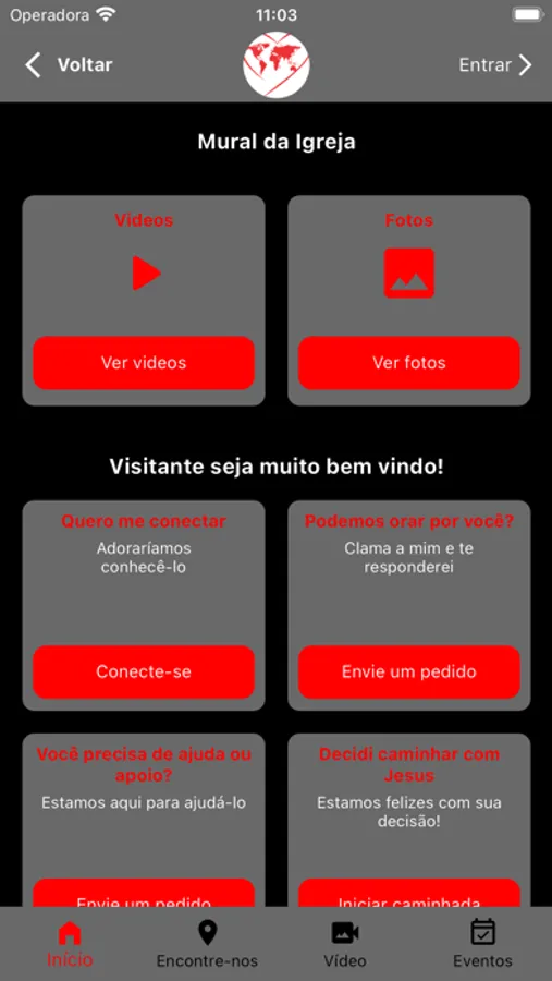 - Mural da igreja com as notícias e ações da igreja local com fotos e vídeos;