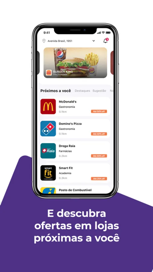 Navegue por um cardápio de ofertas com marcas parceiras de diversos segmentos.