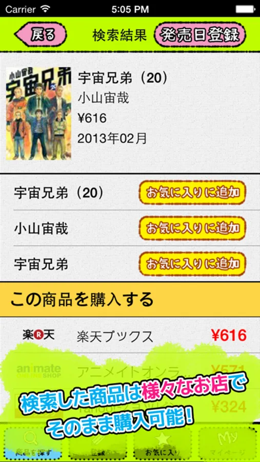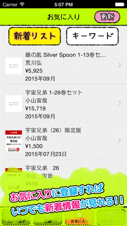 また、お気に入りの本のシリーズやお好きなアーティストのCDなど、常にチェックしておきたい時は、キーワードをお気に入り登録しておくと、新着リストに商品が表示され、近々どんなものが発売されるかがひと目で分かります!