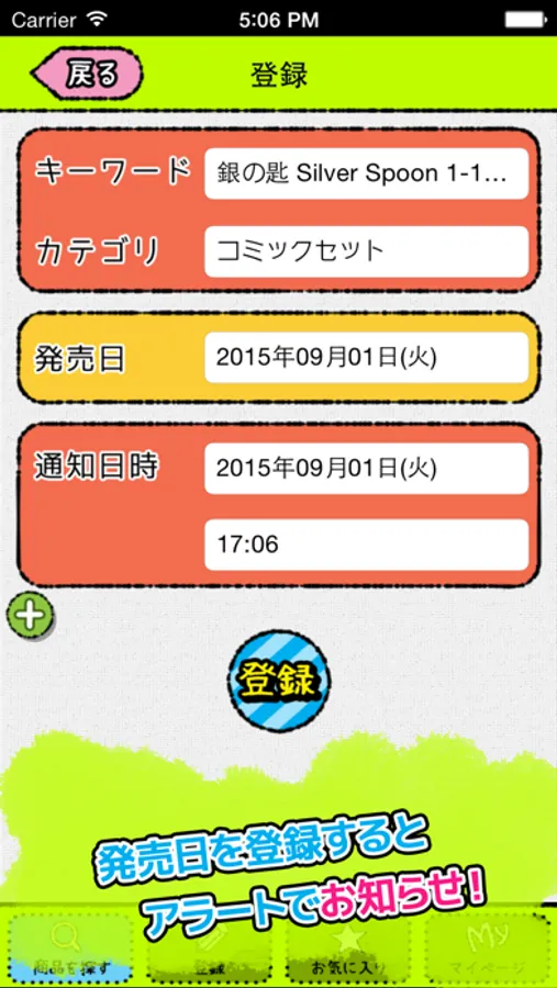 あなたの好きな日時に登録できるから、学校や会社の行きや、帰りに合わせて通知を設定したり、発売日の一週間前や前日などに通知させることが出来ます。