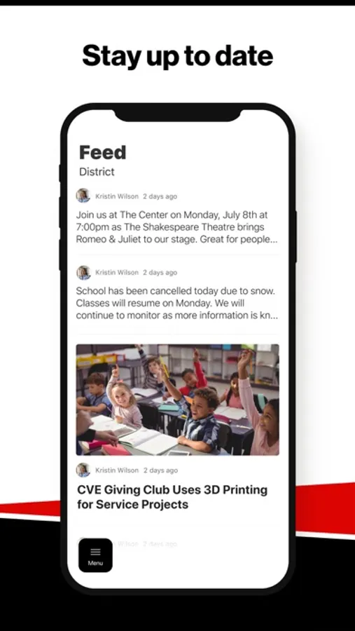 In the Live Feed is where you'll find updates from the administration about what's going on in the district right now. Whether that's celebrating a student's success, or reminding you about an upcoming deadline.