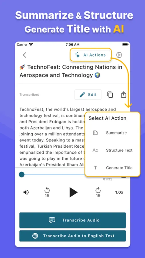 With support for various file formats, including mp4, mp3, mpeg, wav, ogg and more. "Speech to Text Transcribe + AI" stands out as an automatic transcription app that combines speed, accuracy, and affordability.