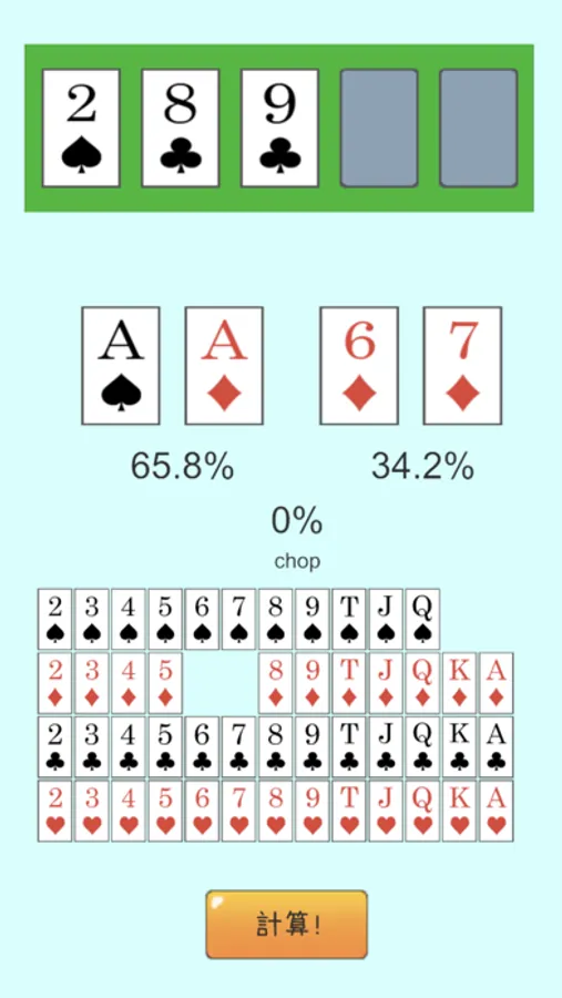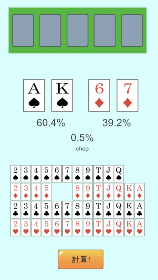 ポーカーのハンドvsハンドの勝率計算ができます。