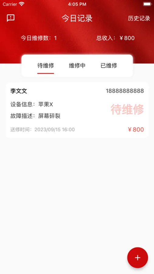 维修小秘App旨在帮助维修员高效记录每一台电子设备的维修情况,包括客户姓名、电话、设备型号、故障描述等详细信息。借助该应用程序,维修员可以快速记录每天的维修数量、收入等数据,更好地分析工作情况。