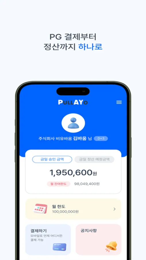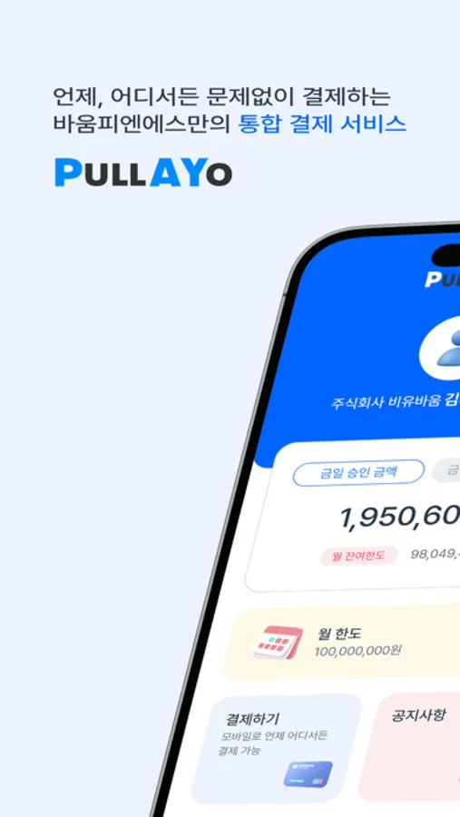 PullAYo는 고객의 입장에서 설계하고 개발된 바움P&S만의 PG결제 서비스 플랫폼입니다. 카드/계좌/휴대폰을 이용하는 다양한 결제 수단으로 보다 쉽고 안전한 결제를 지원하며, 결제부터 매출, 정산까지 한번에 확인하고 이용할 수 있습니다.
