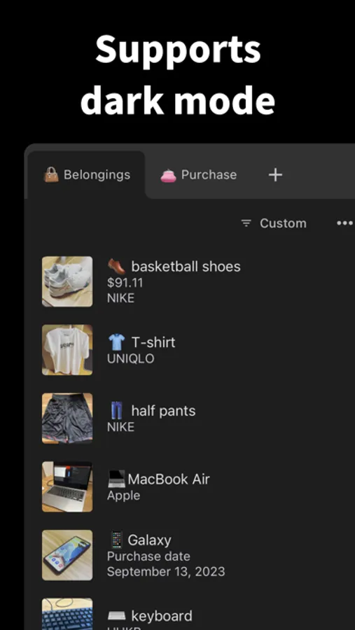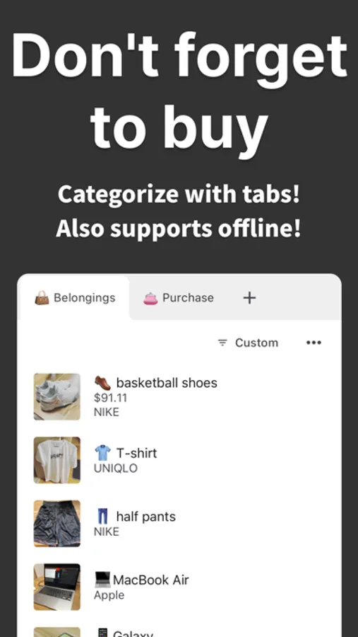 Create unlimited tabs by category for a perfectly organized shopping experience.