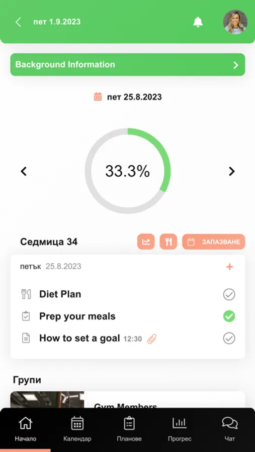 Проследявайте напредъка: запишете своите мерки и проследете как те се изменят с времето. Бъдете редовни, за да отключите специални значки и постижения.
