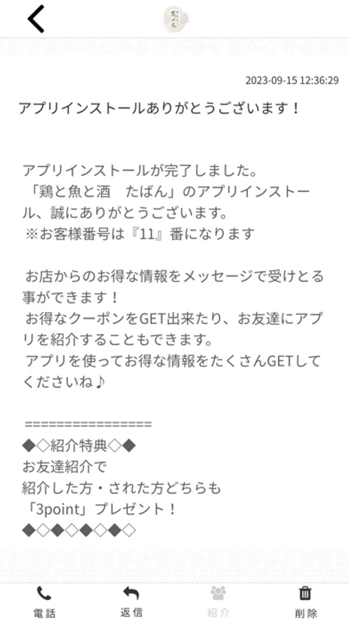 たばんのアプリをSNSを通じてお友達に紹介する事ができます。