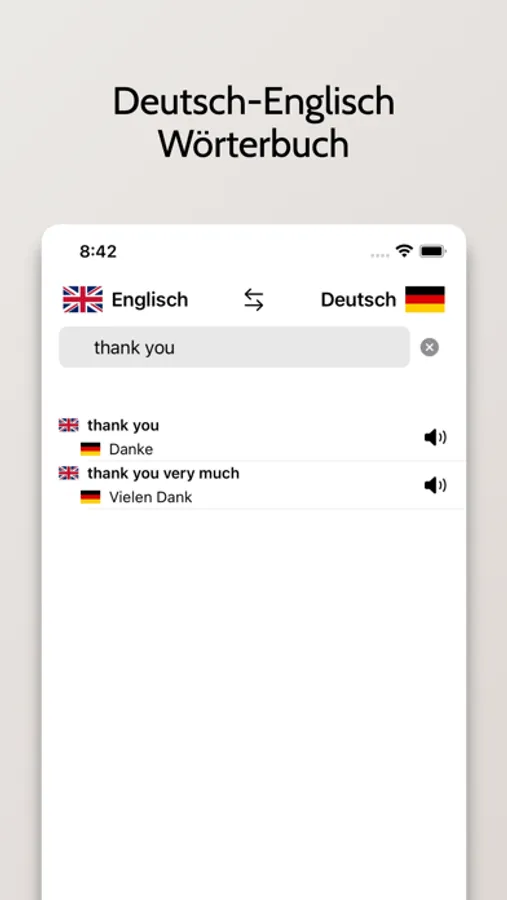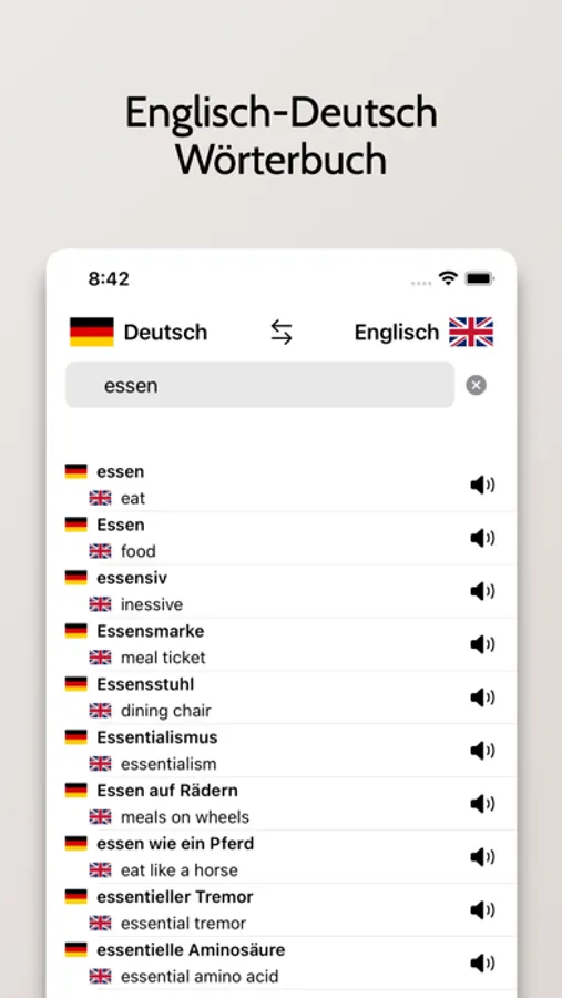 - Möglichkeit, um nach Wörtern sowohl auf Deutsch als auch auf Englisch suchen.