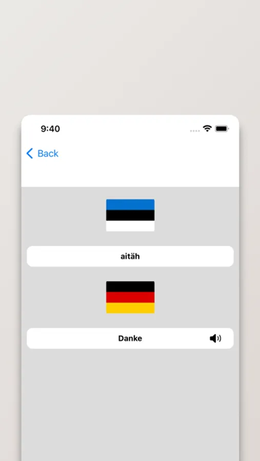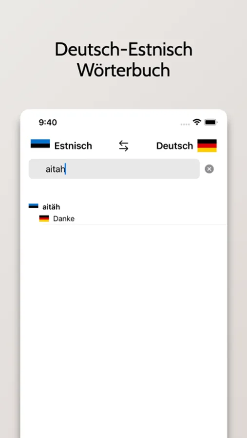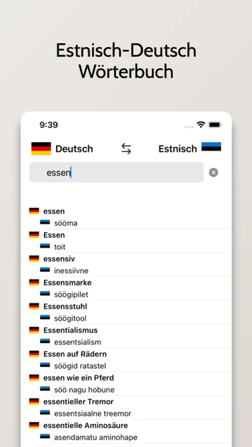 - Möglichkeit, um nach Wörtern sowohl auf Deutsch als auch auf Estnisch suchen.