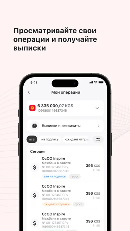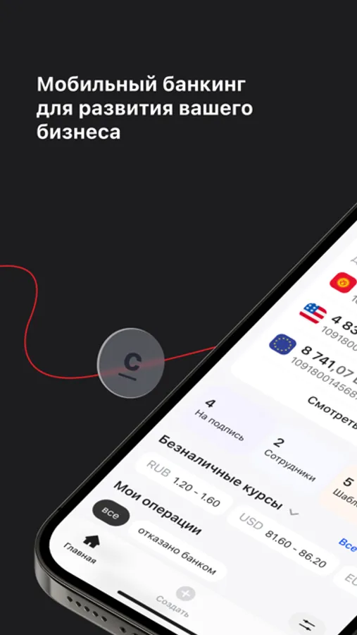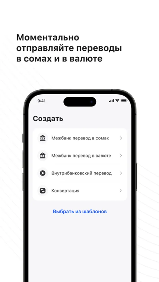 ◦ Совершайте мгновенные переводы вашим бизнес-партнерам в сомах и в валюте