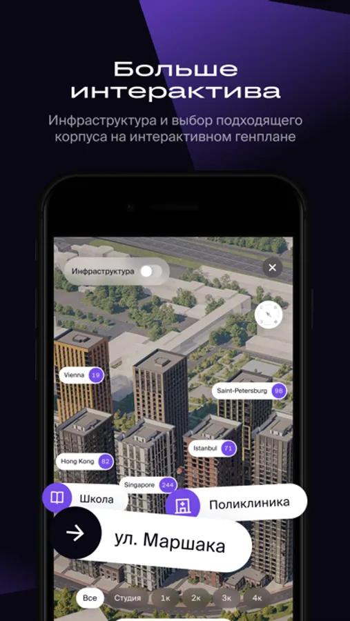 • Мы - один из ведущих девелоперов жилья и коммерческой недвижимости, и в нашем мобильном приложении вы найдете информацию обо всех наших проектах.